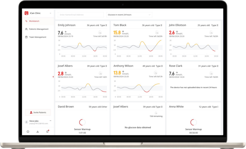 iCan Review zjednodušuje vzdialenú správu pacienta. WorkBench vám umožňuje zobraziť údaje o glykémii v reálnom čase v priebehu niekoľkých minút, pričom automaticky synchronizuje správy s účtom každého pacienta pre rýchlejšie a informované rozhodnutia.