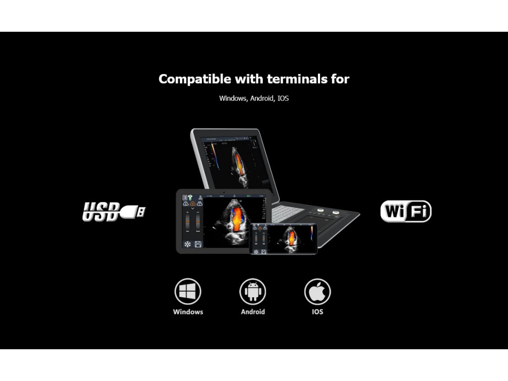 Podpora režimov B, M, Color Doppler, PW – podľa konfigurácie